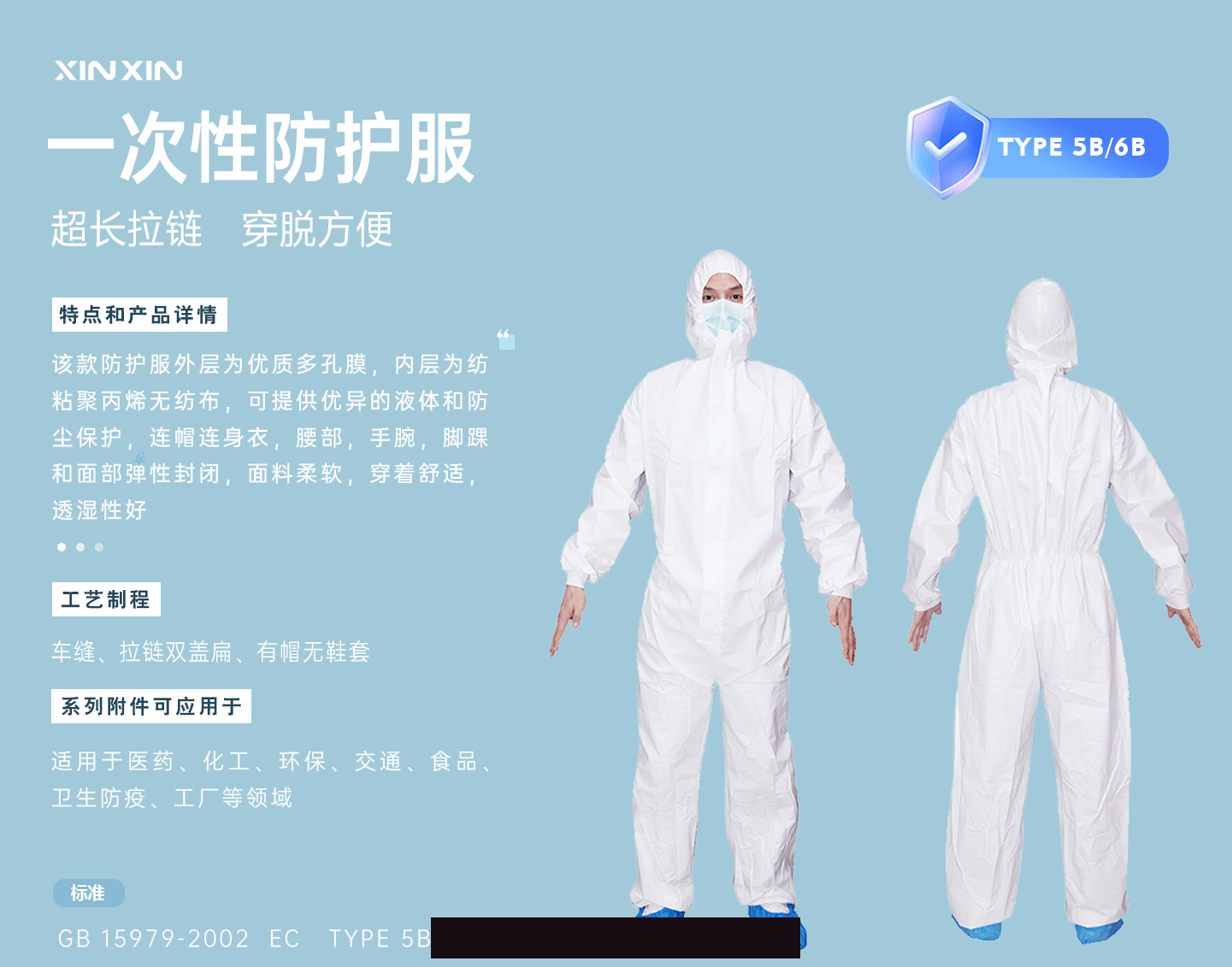 規格尺(chǐ)寸(cùn):S~4XL 主(zhǔ)要(yào)成(chéng)分(fēn):聚丙烯+聚乙烯 克(kè)重(zhòng):50g-65g 工藝:車縫、拉鍊(liàn)双(shuāng)蓋扁、有(yǒu)帽(mào)無鞋(xié)套(tào) 包(bāo)装:1件/包(bāo) 25包(bāo)/箱(xiāng)