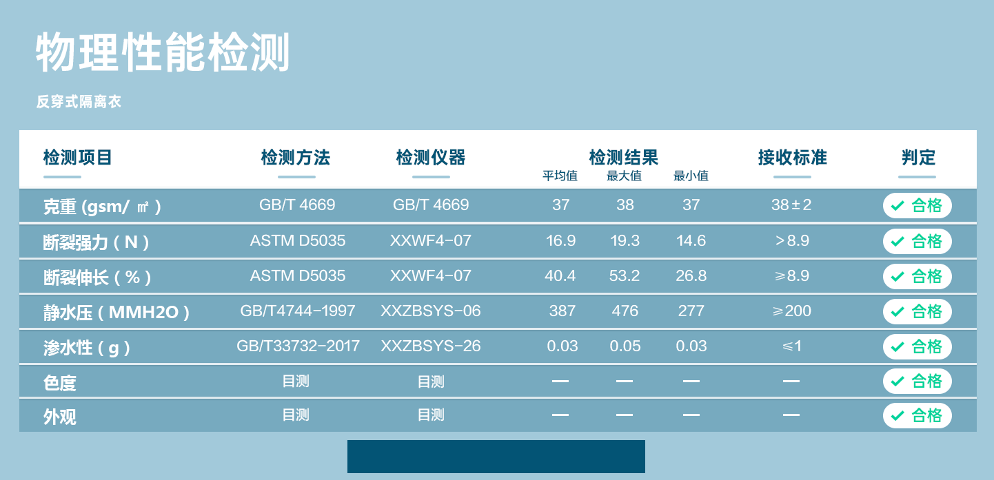 規格尺(chǐ)寸(cùn):S~2XL 主(zhǔ)要(yào)成(chéng)分(fēn):聚丙烯+聚乙烯 克(kè)重(zhòng):28g-50g 颜色(sè):白(bái)色(sè)、黃色(sè)、藍(lán)色(sè) 工藝:車縫、針(zhēn)织袖口(kǒu)領口(kǒu)魔術(shù)貼、呵腰带(dài) 包(bāo)装:10件/包(bāo) 10包(bāo)/箱(xiāng)