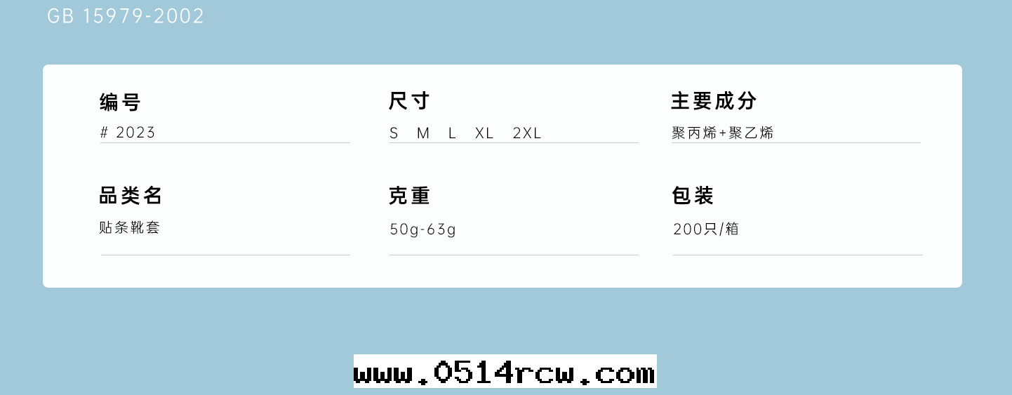 主(zhǔ)要(yào)成(chéng)分(fēn):聚丙烯+聚乙烯 克(kè)重(zhòng):50g-63g 颜色(sè):白(bái)色(sè) 尺(chǐ)寸(cùn):S~2XL 包(bāo)装:200只(zhī)/箱(xiāng)